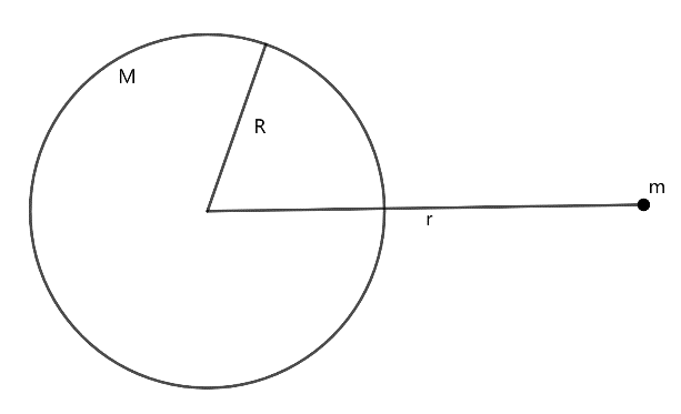 约定均质球体的质量为$M$,半径为$R$,空间中有一个质量为$m$的微粒与均质球体中心的距离是$r$,微粒受到球体的重力合力为$F_\mathrm{total}$.